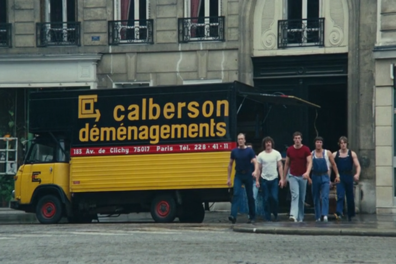 Moment où les déménageurs décident de se diriger vers la Renault 12 de Michel Clément (Coluche).