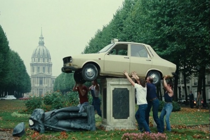 La Renault 12 est portée par les déménageurs sur le socle de la statue de Napoléon qui dans la réalité n’existe pas. L’endroit se trouve à quelques mètres du précédent situé au 42 avenue de Breteuil.